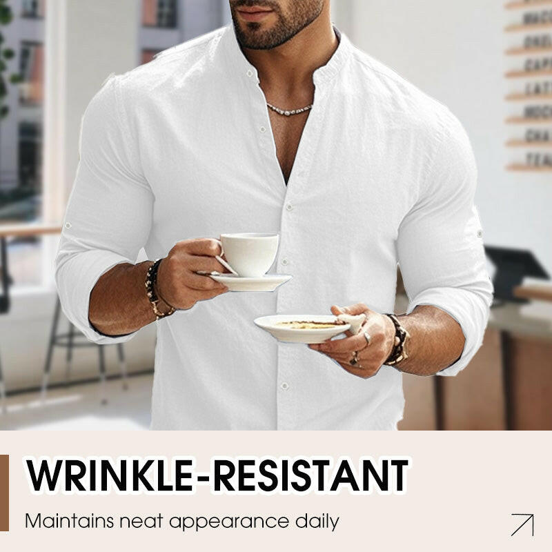 🔥Soldes exceptionnelles‼️Chemise unie décontractée à col montant pour homme