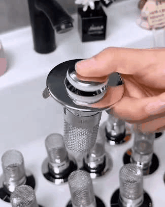 Contrairement à un drain à bouton-poussoir ordinaire, ce bouchon de canalisation est doté d'un panier anti-colmatage à l'intérieur qui recueille soigneusement les poils et empêche le drain de se boucher. Aucun bijou, bague, saleté ou autre objet ne pénétrera dans le tuyau d'évacuation.