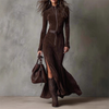 Robe longue à manches longues en simili daim avec fermeture éclair