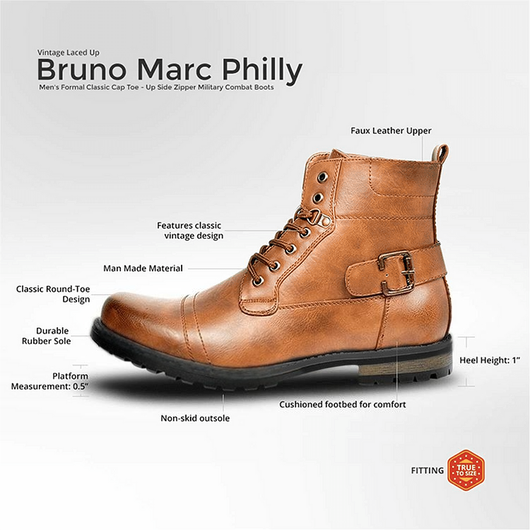 Un design superbe et confortable Ces bottes ont un design de combat inspiré de la moto, ainsi qu'une semelle extérieure en caoutchouc antidérapante pour faciliter les mouvements. Les chaussures sont également dotées d'une boucle décorative et d'une fermeture éclair latérale pour un enfilage et un retrait faciles.