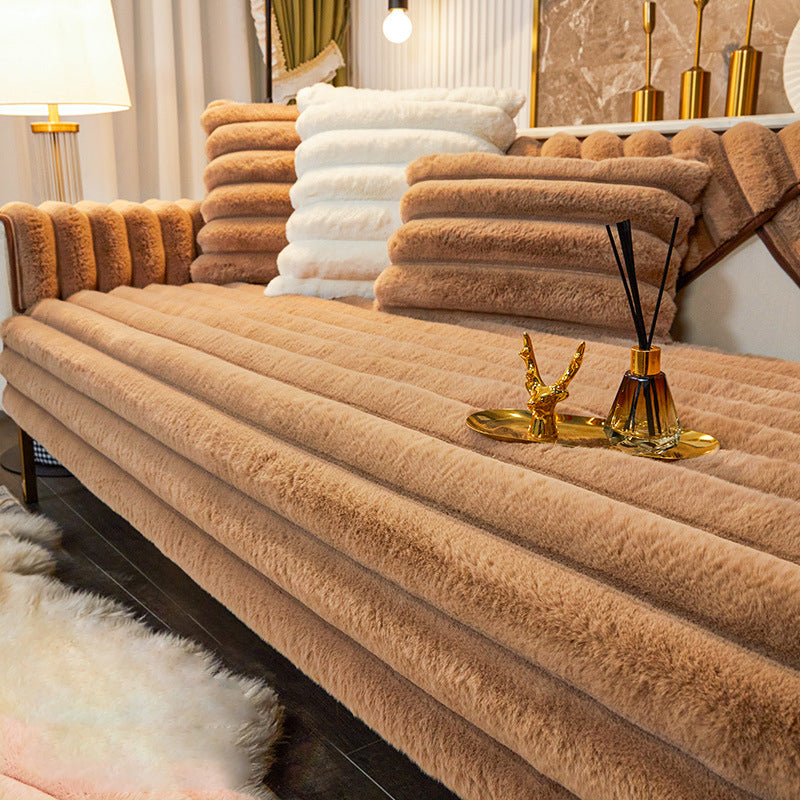 ⛄🎊 50% de rabais 🎊🎅--Housse de canapé en peluche antidérapante en fourrure de lapin
