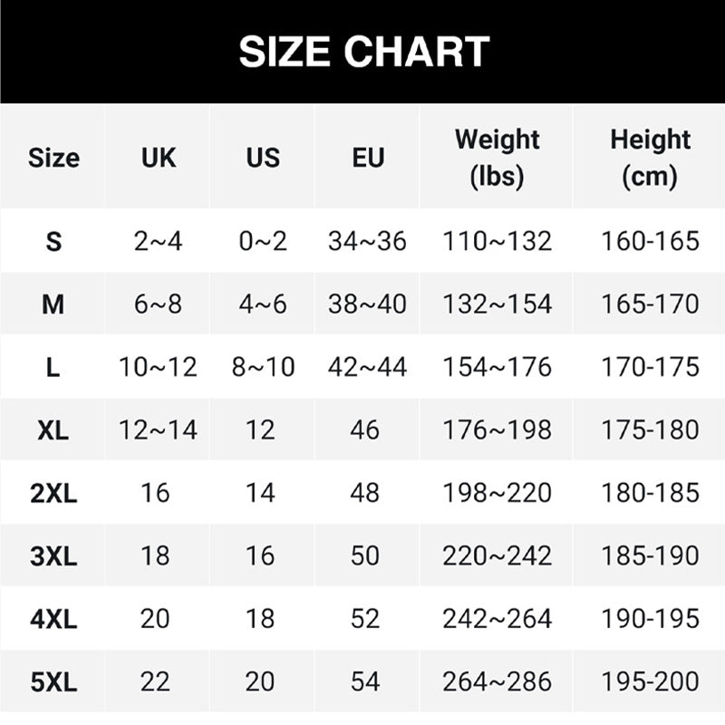 Taille : S, M, L, XL, 2XL, 3XL, 4XL, 5XL