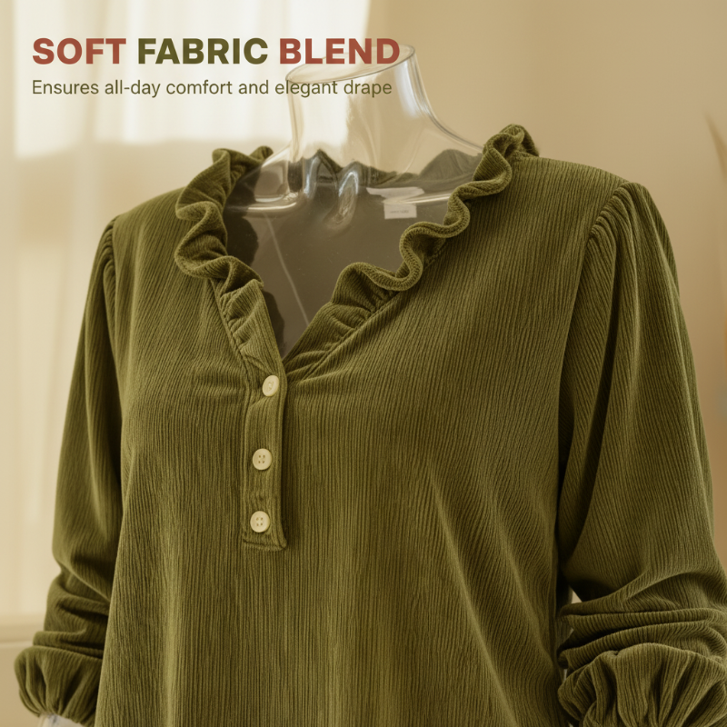 DÉTAILS ÉLÉGANTS DES VOLANTS ET DES MANCHES - Le décolleté en V est magnifiquement encadré de volants délicats, tandis que les manches lanternes ajoutent une touche de volume romantique. Ces détails créent une silhouette flatteuse et rehaussent votre charme féminin sans effort.