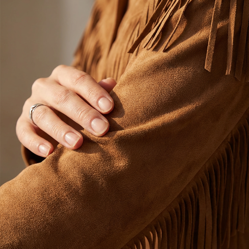 FAUX SUEDE DE LUXE - Offre une texture riche et un toucher doux sans nécessiter beaucoup d'entretien. Ce matériau haut de gamme et résistant offre un confort et une élégance incomparables, tout en ajoutant une touche d'élégance rustique à votre garde-robe.