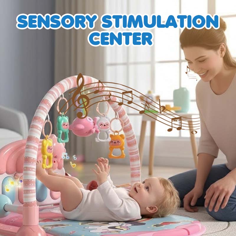 JOUETS POUR LE DÉVELOPPEMENT SENSORIEL - Plus qu'un simple tapis, il comprend des jouets suspendus, des lumières et des sons qui stimulent la vue, l'ouïe et le toucher, accélérant ainsi le développement cognitif et moteur crucial des premiers stades.