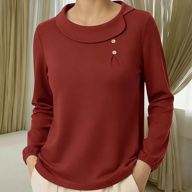 COL ASYMÉTRIQUE PETER PAN - Ce col unique ajoute une touche de charme moderne, rehaussant votre look au-delà des hauts basiques. Il encadre magnifiquement le visage, offrant une alternative sophistiquée aux cols roulés standard pour une élégance quotidienne sans effort.